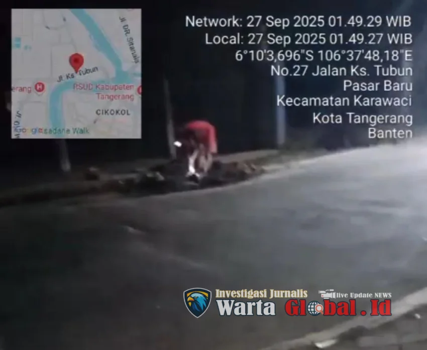 Kota Tangerang, Ivsetigasi Warta Global – Aksi sindikat pencurian kabel tembaga milik PT Telkom Indonesia di Kota Tangerang akhirnya terbongkar. Warga mencurigai aktivitas mencurigakan pada malam hari di Jalan KS Tubun, Pasar Baru, Kecamatan Karawaci, Sabtu (27/9/2025).