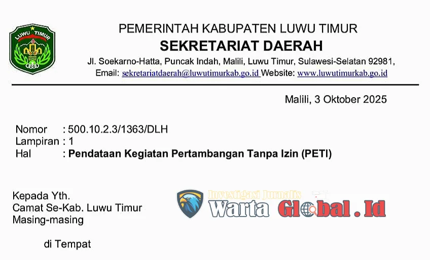 Sebagai tindak lanjut dari berbagai temuan tersebut, Pemerintah Kabupaten Luwu Timur melalui Sekretariat Daerah telah menyurati seluruh camat se-Luwu Timur untuk melakukan pendataan aktivitas pertambangan tanpa izin (PETI) di masing-masing wilayah kecamatan. Langkah ini merupakan bagian dari komitmen Pemkab Lutim dalam menekan maraknya kegiatan tambang ilegal yang berpotensi merusak lingkungan.