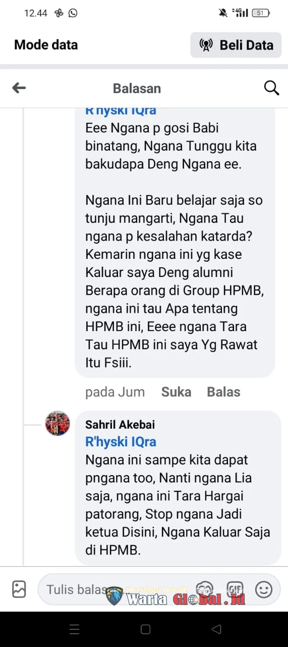 “Saya bukan binatang, dan saya tidak terima jika disebut anjing. Apalagi yang bersangkutan adalah alumni HPMB. Komentar seperti itu tidak pantas dan melukai martabat kami,” tegas Riski saat ditemui wartawan.