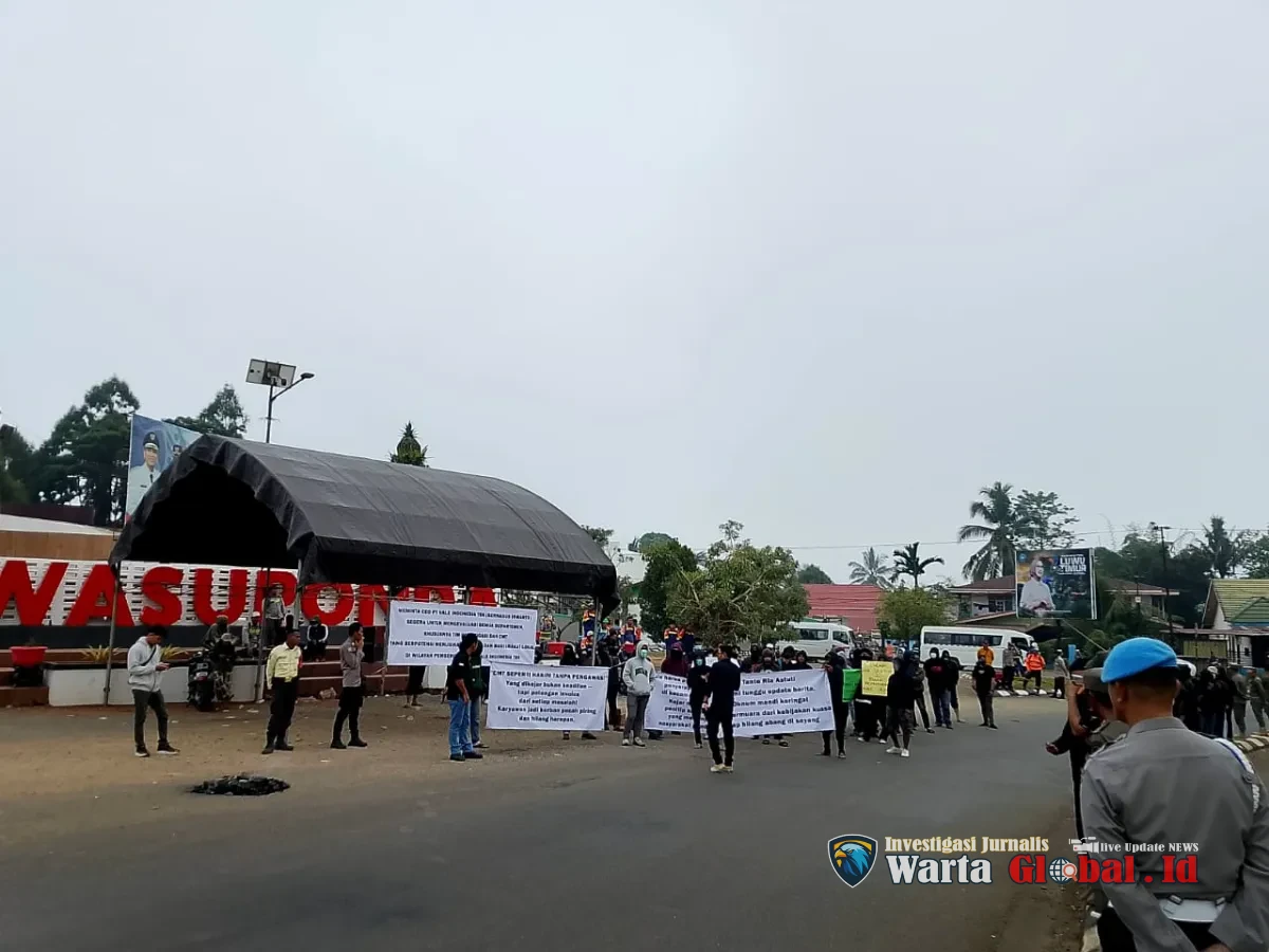 Luwu Timur,Investigasiwartaglobal.id — Aksi Akbar yang digelar oleh tiga organisasi lokal berlangsung sejak pukul 06.00 WITA di Tugu Nanas, Wasuponda, Kamis (16/10).