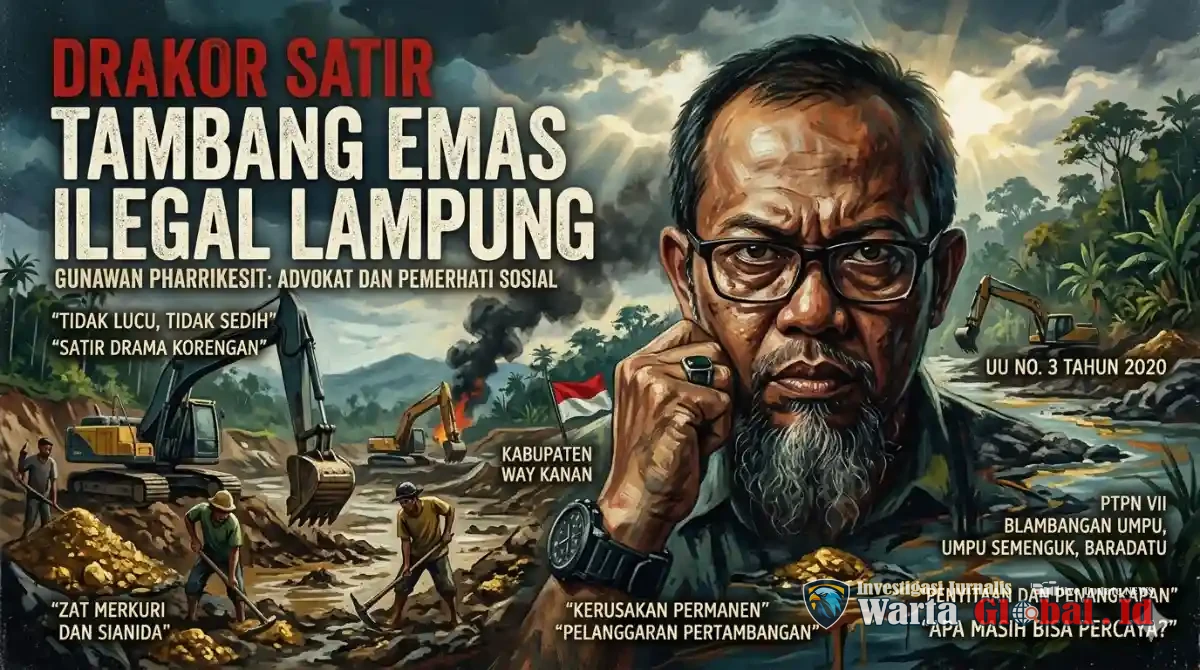 Bandarlampung , investigasi.wartaglobal.id — *Tidak lucu, tidak sedih.* Datar dan sesungguhnya bisa saja tidak menarik. Namun satir. Inilah drama korengan alias DRAKOR Tambang Emas Ilegal, Kabupaten Way Kanan.
